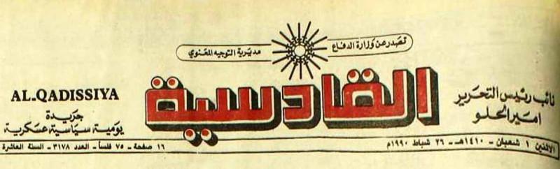 AL-QADISSYA : جريدة يومية سياسية عسكرية /