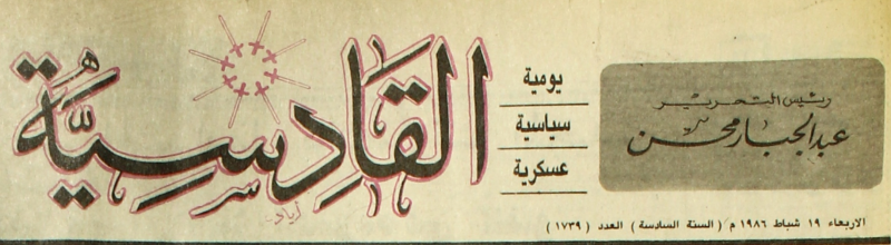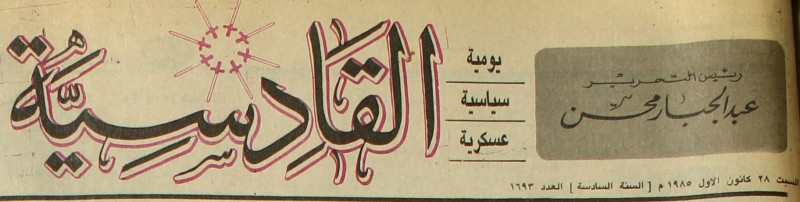 AL-QADISSYA : جريدة يومية سياسية عسكرية /