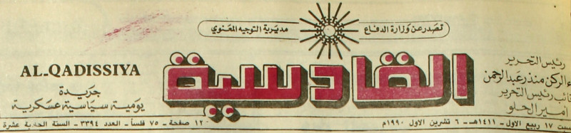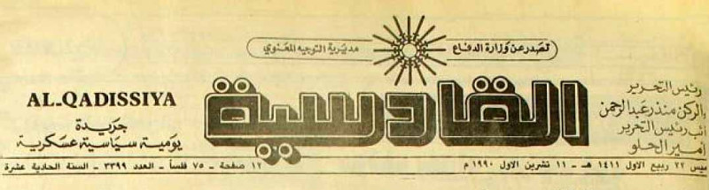 AL-QADISSYA : جريدة يومية سياسية عسكرية /