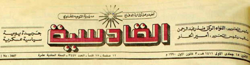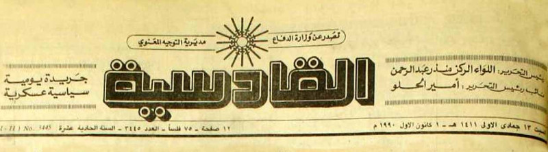 AL-QADISSYA : جريدة يومية سياسية عسكرية /