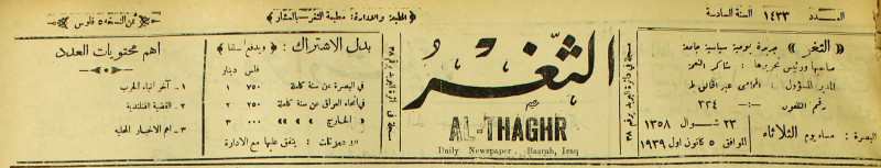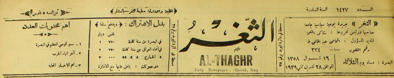 جريدة يومية سياسية عامة = AL-Thaghr : A Daily Newspaper