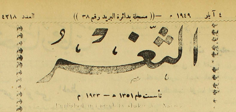 جريدة يومية سياسية عامة = AL-Thaghr : A Daily Newspaper