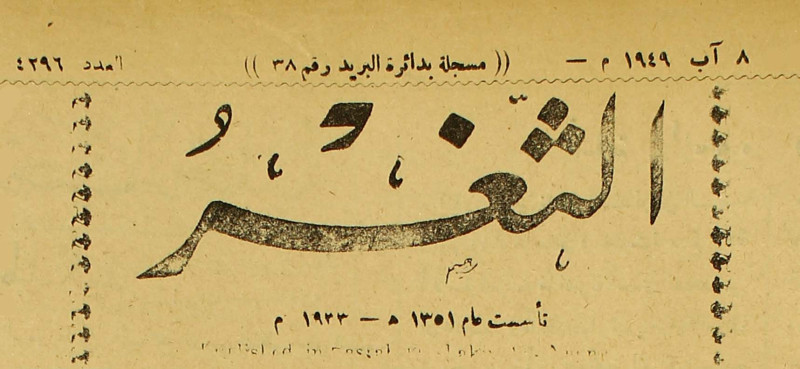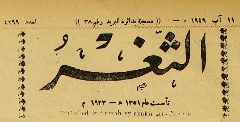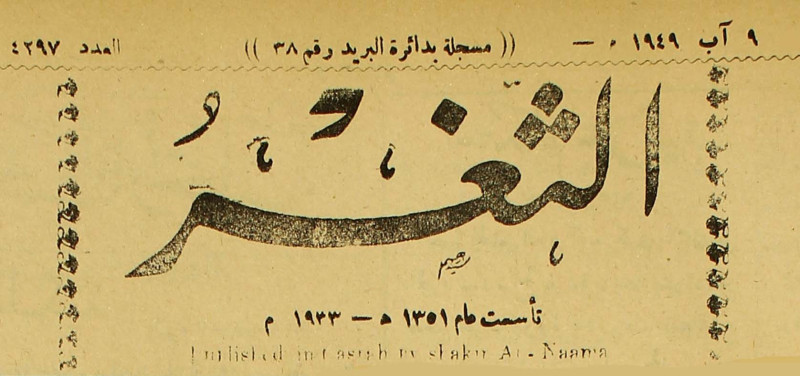 جريدة يومية سياسية عامة = AL-Thaghr : A Daily Newspaper
