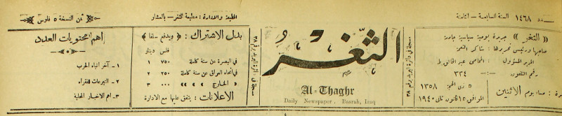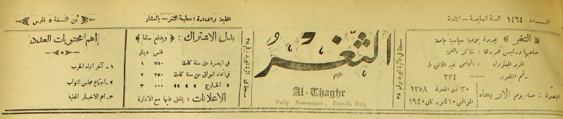 جريدة يومية سياسية عامة = AL-Thaghr : A Daily Newspaper