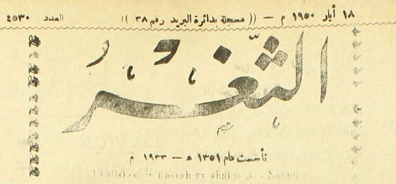 جريدة يومية سياسية عامة = AL-Thaghr : A Daily Newspaper