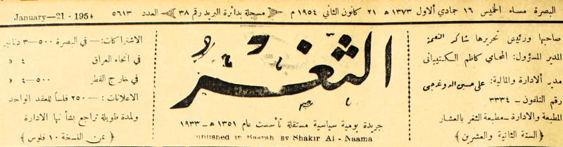 صاحبها ورئيس تحريرها : شاكر النعمة.
