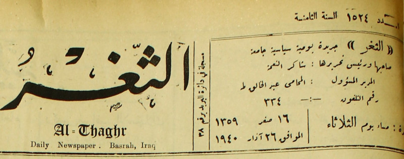 جريدة يومية سياسية عامة = AL-Thaghr : A Daily Newspaper