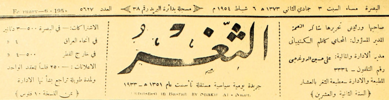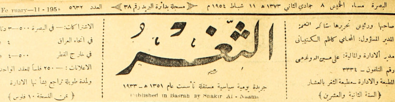 جريدة يومية سياسية عامة = AL-Thaghr : A Daily Newspaper