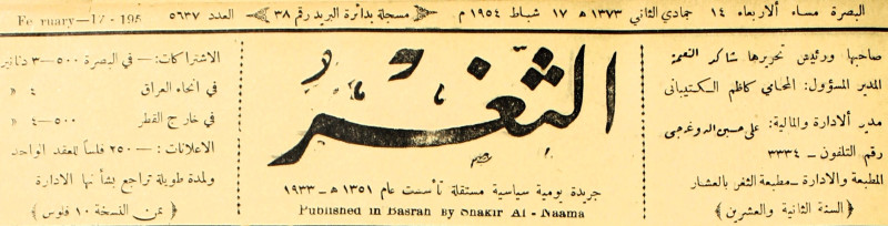 صاحبها ورئيس تحريرها : شاكر النعمة.