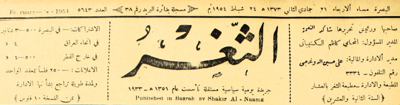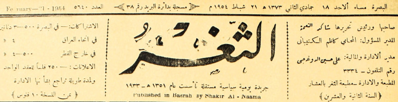 جريدة يومية سياسية عامة = AL-Thaghr : A Daily Newspaper