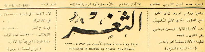 صاحبها ورئيس تحريرها : شاكر النعمة.