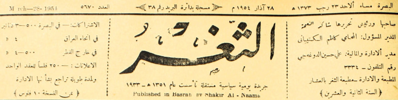 صاحبها ورئيس تحريرها : شاكر النعمة.