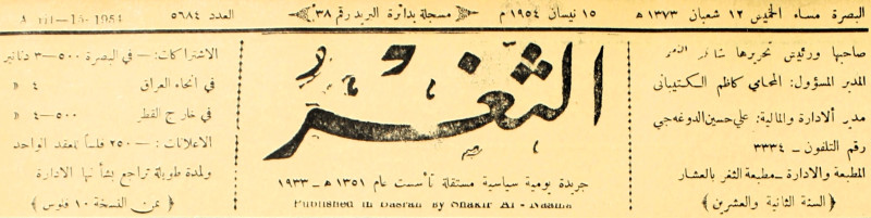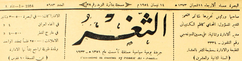 جريدة يومية سياسية عامة = AL-Thaghr : A Daily Newspaper