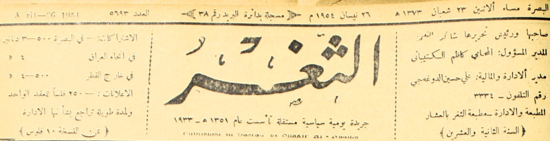جريدة يومية سياسية عامة = AL-Thaghr : A Daily Newspaper