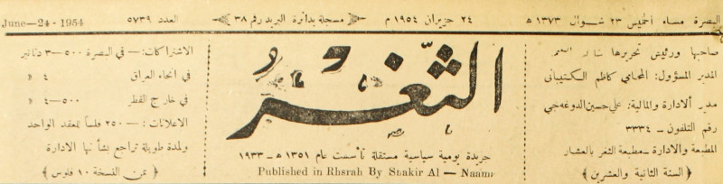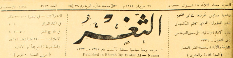جريدة يومية سياسية عامة = AL-Thaghr : A Daily Newspaper