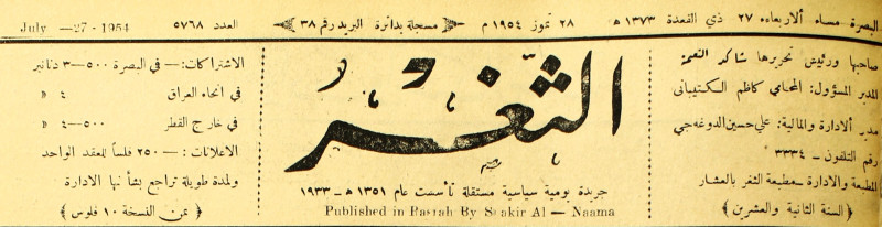 صاحبها ورئيس تحريرها : شاكر النعمة.