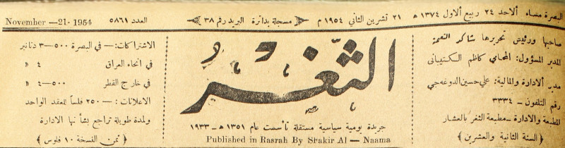 جريدة يومية سياسية عامة = AL-Thaghr : A Daily Newspaper
