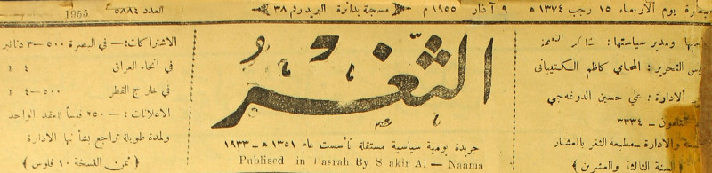 جريدة يومية سياسية عامة = AL-Thaghr : A Daily Newspaper