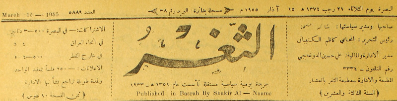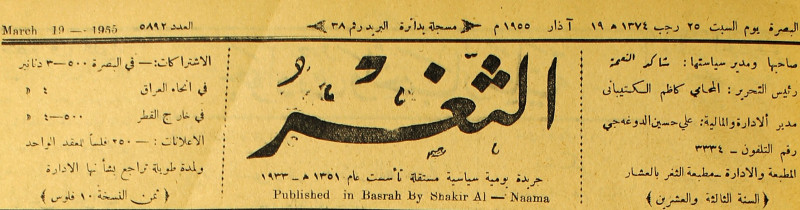 صاحبها ورئيس تحريرها : شاكر النعمة.