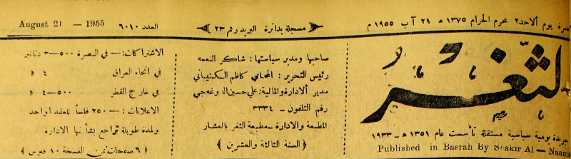 صاحبها ورئيس تحريرها : شاكر النعمة.