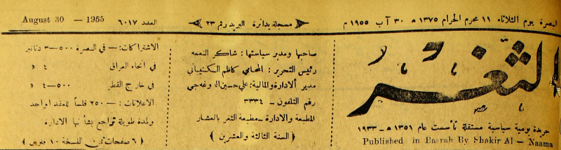 جريدة يومية سياسية عامة = AL-Thaghr : A Daily Newspaper