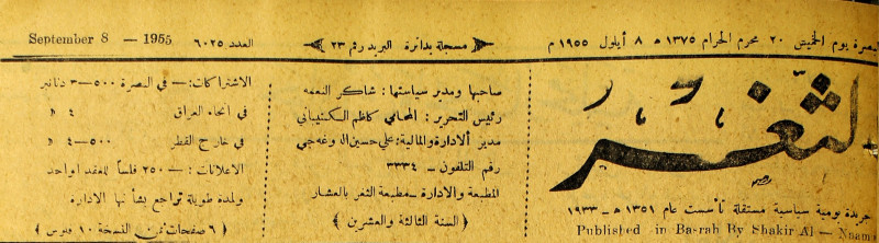 جريدة يومية سياسية عامة = AL-Thaghr : A Daily Newspaper