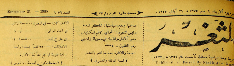 صاحبها ورئيس تحريرها : شاكر النعمة.