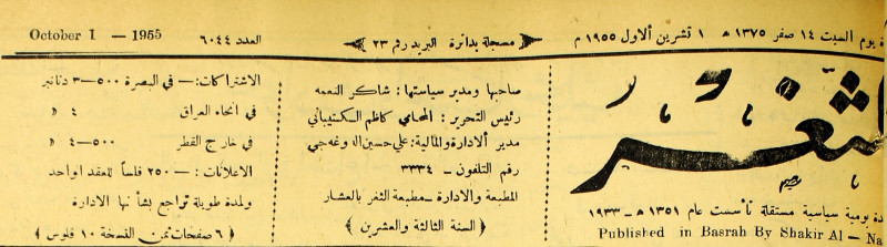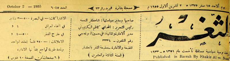صاحبها ورئيس تحريرها : شاكر النعمة.