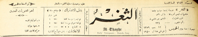 جريدة يومية سياسية عامة = AL-Thaghr : A Daily Newspaper