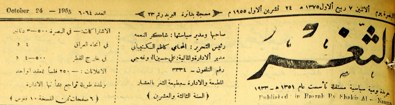 صاحبها ورئيس تحريرها : شاكر النعمة.