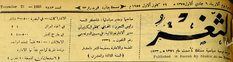 صاحبها ورئيس تحريرها : شاكر النعمة.