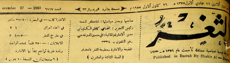 جريدة يومية سياسية عامة = AL-Thaghr : A Daily Newspaper