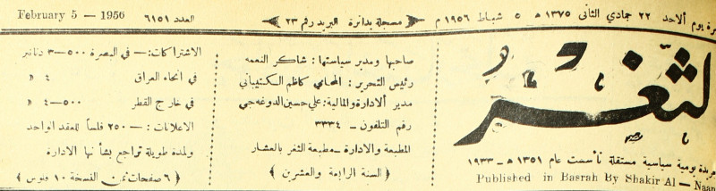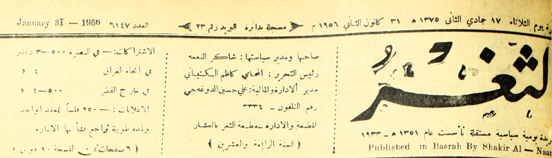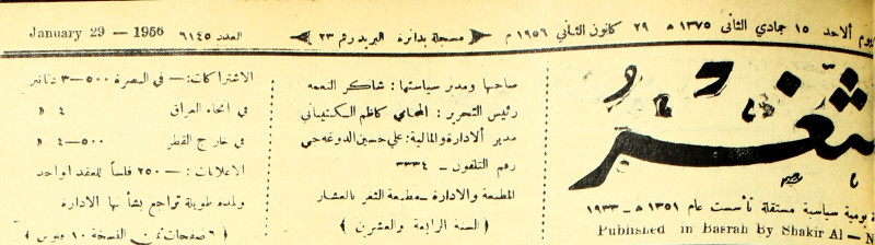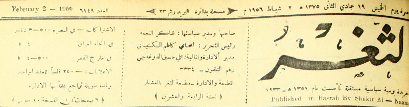 صاحبها ورئيس تحريرها : شاكر النعمة.