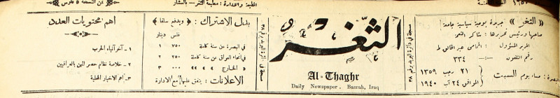 جريدة يومية سياسية عامة = AL-Thaghr : A Daily Newspaper