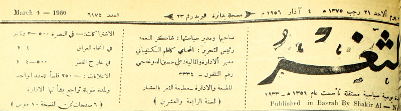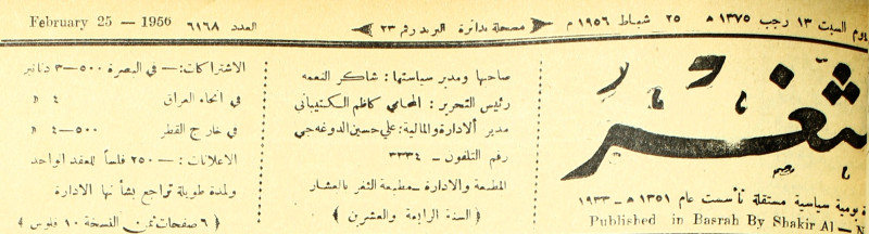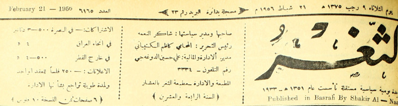 صاحبها ورئيس تحريرها : شاكر النعمة.