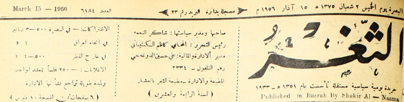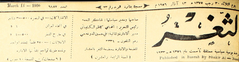 صاحبها ورئيس تحريرها : شاكر النعمة.