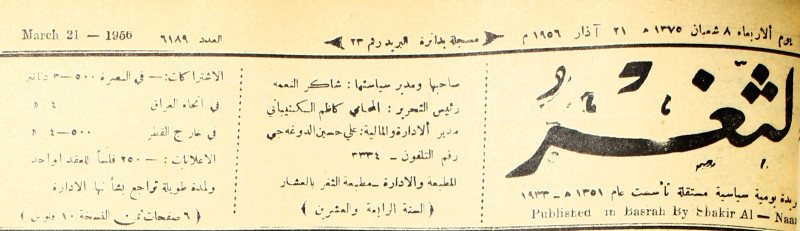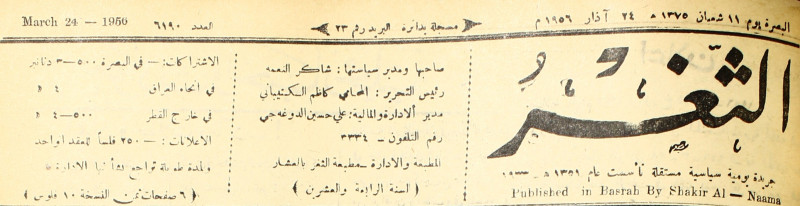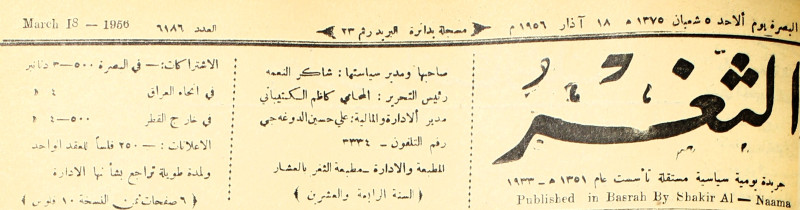 صاحبها ورئيس تحريرها : شاكر النعمة.