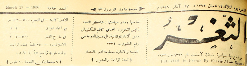 جريدة يومية سياسية عامة = AL-Thaghr : A Daily Newspaper