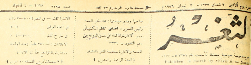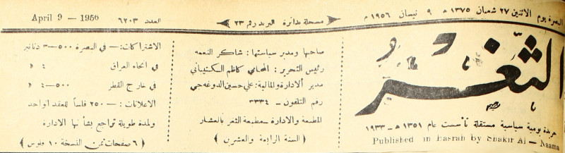 صاحبها ورئيس تحريرها : شاكر النعمة.