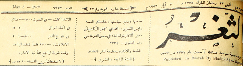 صاحبها ورئيس تحريرها : شاكر النعمة.
