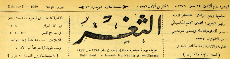 صاحبها ورئيس تحريرها : شاكر النعمة.