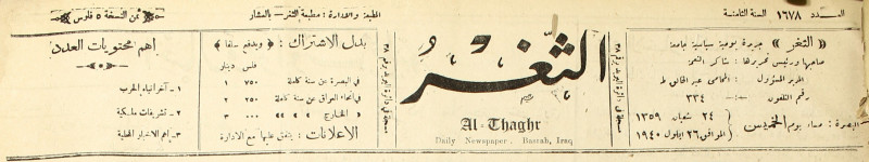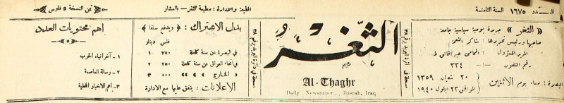 جريدة يومية سياسية عامة = AL-Thaghr : A Daily Newspaper
