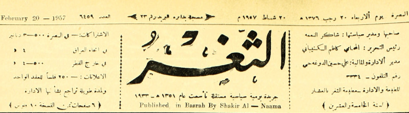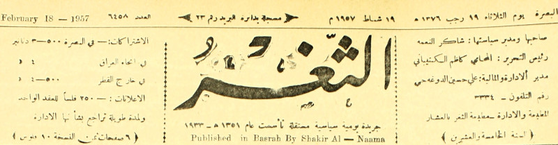 صاحبها ورئيس تحريرها : شاكر النعمة.