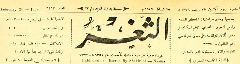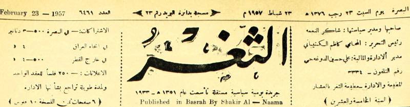جريدة يومية سياسية عامة = AL-Thaghr : A Daily Newspaper