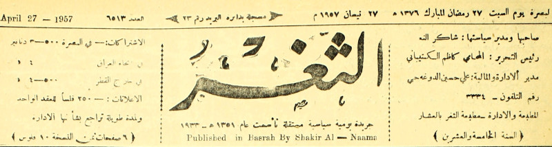 صاحبها ورئيس تحريرها : شاكر النعمة.