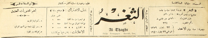 جريدة يومية سياسية عامة = AL-Thaghr : A Daily Newspaper
