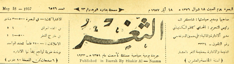 صاحبها ورئيس تحريرها : شاكر النعمة.