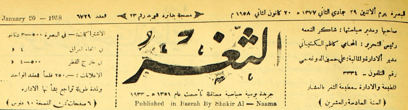 صاحبها ورئيس تحريرها : شاكر النعمة.