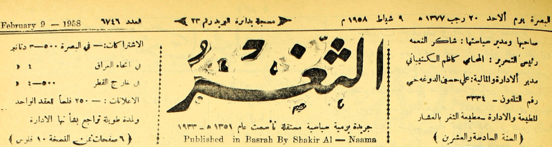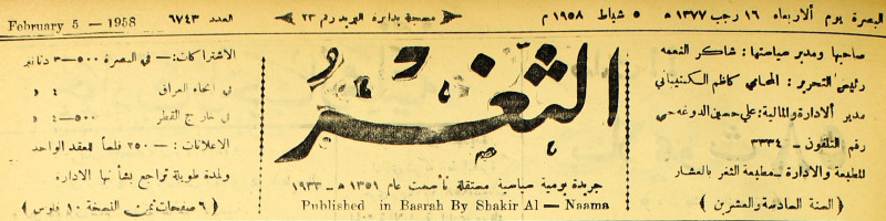 صاحبها ورئيس تحريرها : شاكر النعمة.