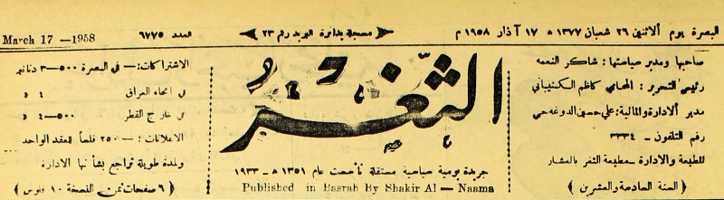 جريدة يومية سياسية عامة = AL-Thaghr : A Daily Newspaper